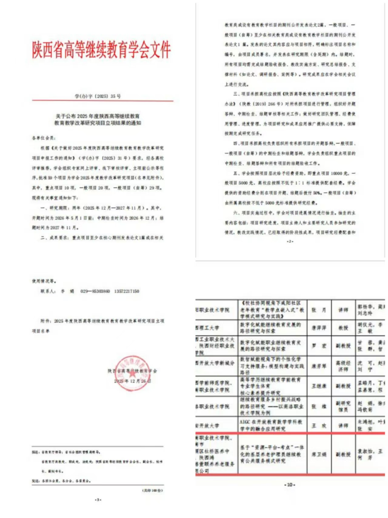 此次省级教改项目立项,是我校继续教育科研创新工作的重要突破,为学校新一轮“双高”建设注入了新的动力。下一步,继续教育学院将强化项目全过程管理与服务保障,支持项目团队聚焦关键研究问题、培育高质量研究成果。同时,学院将以此次立项为契机,进一步整合校内科研力量,深化科教融合、产教融合,力争产出更多优秀研究成果,为区域经济社会发展和陕西职业教育高质量发展贡献力量。(撰稿:继续教育学院 翟超 审核:黄玉剑)